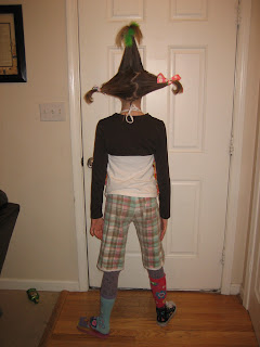 Bug's creation. He wasn't too thrilled how it turned out, but he created it himself and used his imagination. The Rolo was in one of the holes and the leprechaun was supposed to stomp on the paper and fall through getting caught. As you can see the leprechaun left some foot prints and green coins, but didn't get trapped!